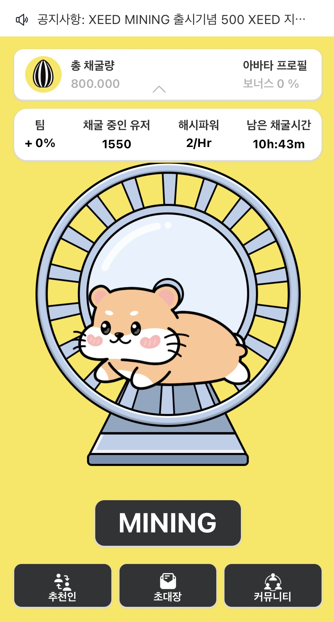 사진은 제가 어플을 설치하고 마이닝을 어느정도 돌린 후에 사진입니다. 현재는 가입하게 된다면 오픈 이벤트로 500XED 및 추천인을 입력하면 총 800XED를 받으실 수 있습니다. 더 마르스 어플도 초창기에 진입하신 분들은 1000마르스 이상 지니고 있는 것을 볼 수 있는데 이 어플도 비슷할 것으로 보입니다. 하루 내내 어플을 돌려야 2XED를 캘 수 있기 때문에 지금의 800XED는 굉장히 많은 양으로 보입니다. 현재는 접속자 폭주로 인해서 어플에서 가입이 따로 안 되는 것으로 알고 있습니다. 이것을 부정적으로 보시는 분들도 많은데 저는 굉장히 긍정적으로 보고 있습니다. 사람들의 관심이 없다면 이런 일도 발생하지 않았을 테니깐요. 그리고 피드백도 굉장히 빠르게 패치 및 업데이트를 진행한다고 합니다. 아마 서버를 늘리거나 여러 가지 방향으로 고민을 하고 있겠죠. 그렇기 때문에 내일은 되어야 정상적으로 어플을 쓸 수 있지 않을까 라는 생각을 해봅니다. 앞으로도 기대가 되는 행스터즈! 무료이기 때문에 한번 다운로드하여보시길! 그리고 추천인은 제 글을 읽으셨다면 yhun15로 반드시 부탁드립니다! 그렇다면 오늘도 메타버스 훈수를 여기 까지 하도록 하겠습니다!