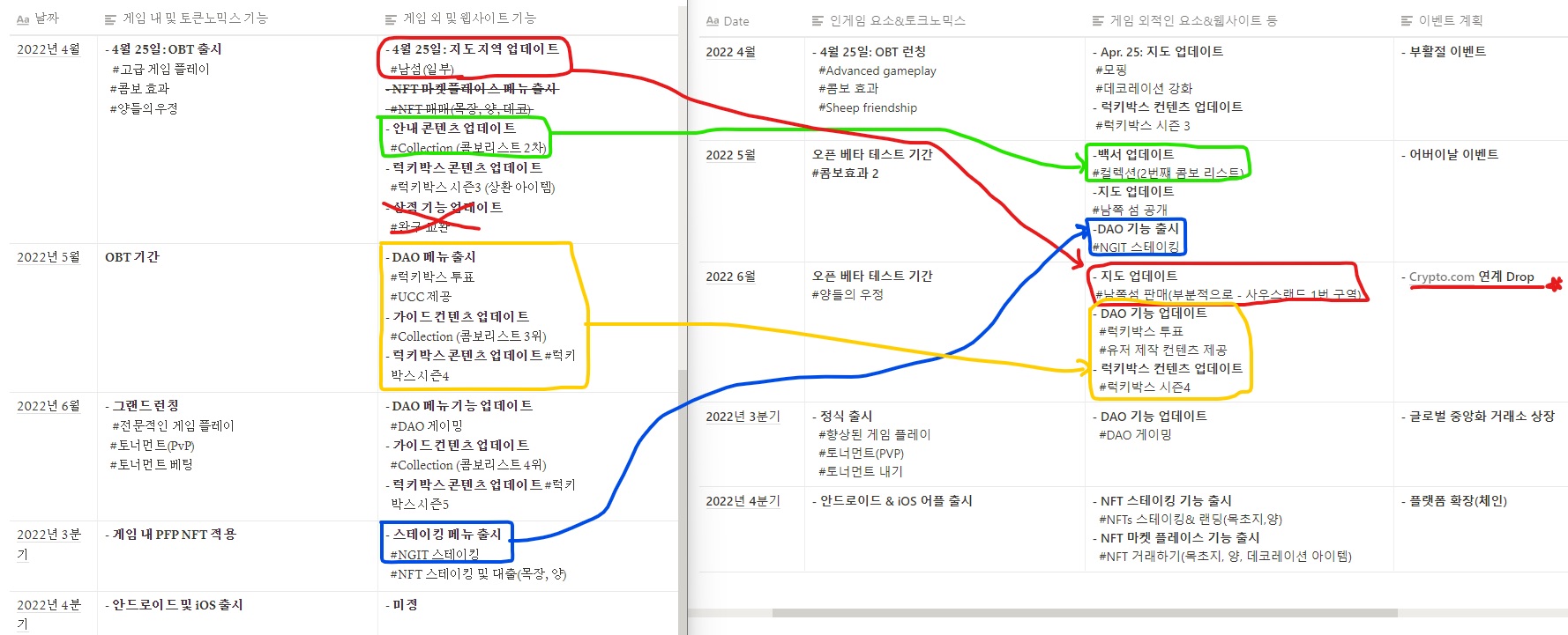 현재 바뀐 점들이 사진으로 자세히 정리가 되어있습니다. 5월달에 있는 빅이벤트들을 보면 ngit 스테이킹이 있습니다. 나게 스테이킹이 사실 가장 먼저 눈에 들어옵니다. 그렇기 때문에 저도 버는 마드를 족족 나게로 바꾸고 있습니다. 그 이유는 음.. 따로 알려드리진 않도록 하겠습니다. 몇 가지 근거에 의해서 그렇게 하고 있습니다. 궁금하시면 댓글로.. 남겨주시면 제가 답변드리도록 하겠습니다. 그리고 지도 업데이트가 5월에 될 예정입니다. 원래는 수동땅을 민팅을 해야 하지만 제 생각에는 현재 시장이.. 수동땅을 민팅한다고 해도 많이 팔릴 것 같지도 않고 오히려 홀더들에게 혜택을 주는 방향으로 가지 않을까 라는 생각을 해봅니다. 자동땅 홀더에게 수동땅 에어드랍..!? 하면 얼마나 좋을까요 ㅠㅠ 그리고 여러가지 일정들이 한달씩 밀렸습니다. 그 이유는 요즘 있는 자잘한 버그들을 먼저 잡고 가려고 하는 것 같습니다. 그리고 럭키 박스 투표가 있는데 이 시스템이 구축되기 전까지 후다닥 나게를 모을 생각 입니다. 그리고 6월달에 크립토 닷컴과 연계 드랍이 있다고 하는데 이부분도 조금은 기대가 되는 부분입니다.