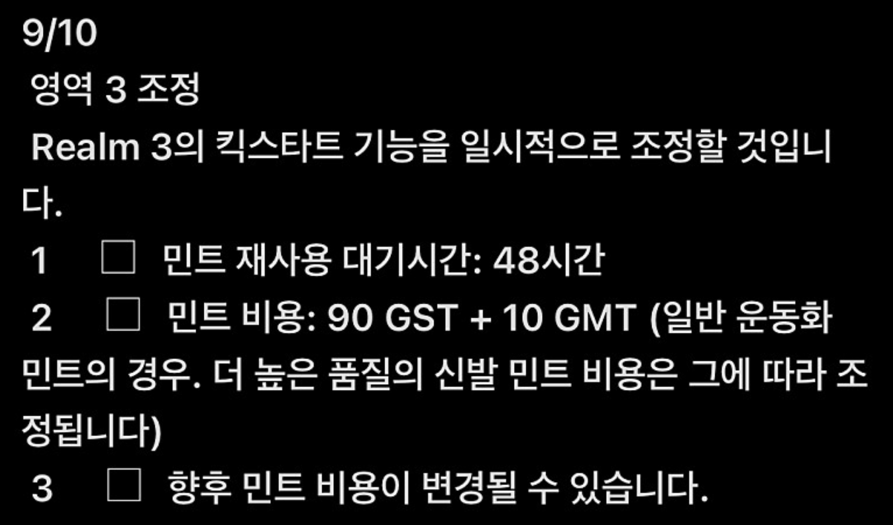 미박이 변경된다고 합니다. 미박이 최근에 한번 변경되면서 럭수치가 중요해졌는데 다시 한번 바뀐다고 합니다. 어떻게 바뀔지 궁금합니다. 럭수치도 중요하겠지만 앞으로는 보상이 점차적으로 더 좋아져서 미박 메타가 계속해서 이어졌으면 좋겠습니다. 그리고 마지막으로 변경되는 점은 렐름 3에 대한 이야기 입니다. 렐름 3는 이더리움으로 될 것이라고 확정이 났고 민팅 날짜도 정해졌습니다. bayc랑 협업인줄 알고 사람들이 다들 좋아했지만 협업이라기 보다는 bayc 홀더들에게 신발을 지급해주는 것.. 이였죠.. 협업이었으면 좋았을걸. 아마 사람들이 렐름 3에 전혀 진입할 생각이 없는 것 같은데 저 또한 그렇습니다.